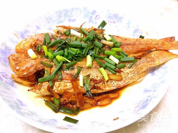 加入蔥花煎香會,把魚夾出來裝碟,在鍋里加一點點開水及醬油,燒開澆在魚上面。