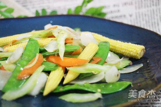 3.放入備好的時(shí)蔬,大火爆幾分鐘,加入少許水晶鹽即可出鍋
