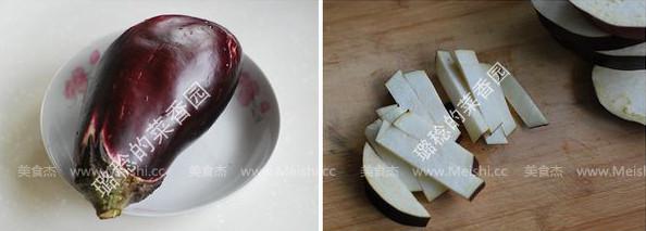 1.茄子洗凈,皮不要去掉并切成小長(zhǎng)條(據(jù)說(shuō)茄子皮中含有大量的營(yíng)養(yǎng)成分,且一些有益健康的化合物在茄子皮中含量也較高)
