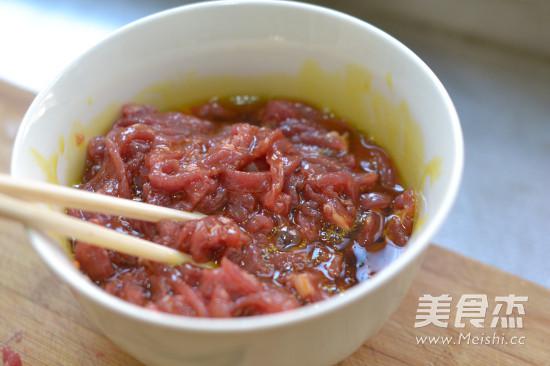 油的量加多少呢?一定要沒過牛肉絲。加入食用油可以使得牛肉口感更加滑嫩,還防止牛肉絲入鍋后粘鍋。