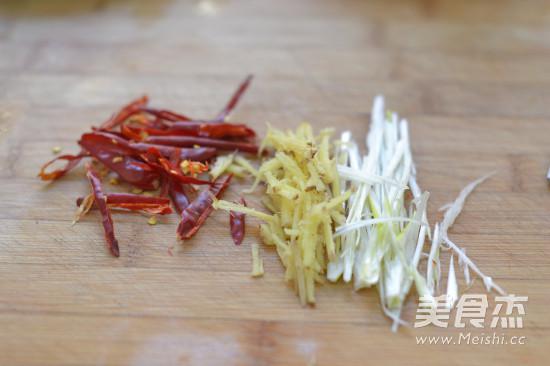 蔥、姜切絲,干辣椒4個切絲