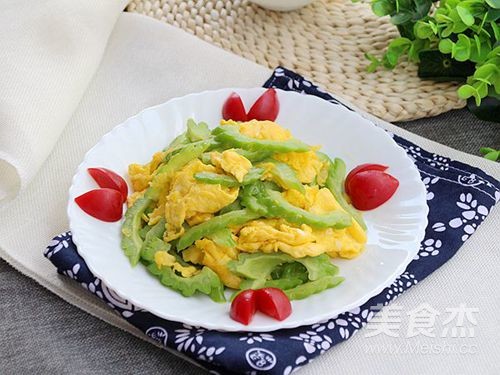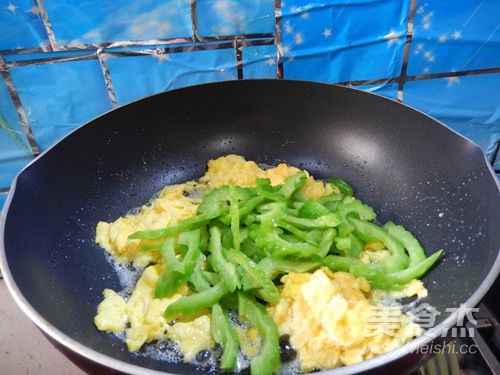 加入處理后的苦瓜,食用鹽炒幾下即可出鍋。