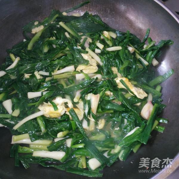 炒至變深綠,加少許雞精,加入炒雞蛋