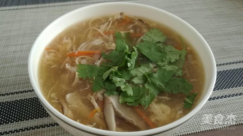 打入雞蛋碎,放醋、胡椒粉