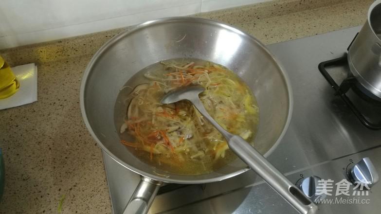 胡蘿卜、豆腐皮切絲(越細(xì)越好),香菇切薄片,金針菇把頭去掉,平菇用手撕細(xì)條后備用