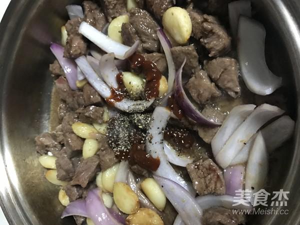 7.腌好的牛肉粒擇去洋蔥絲和姜絲。