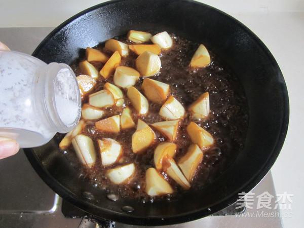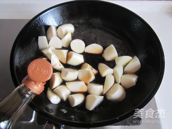 1. 茭白切成滾刀塊; 2. 用蠔油、黃酒和生抽一起燉煮,因為這都有些咸味,所以后面加入鹽的量要少點。
