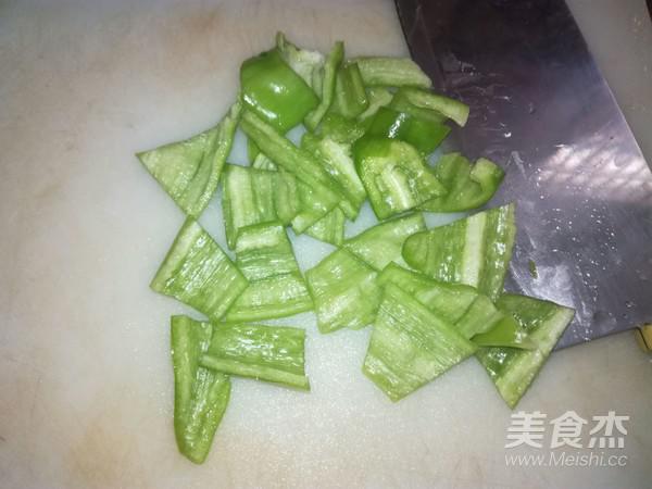 剩的油,倒下瘦肉炒一下,再放入青椒翻炒。