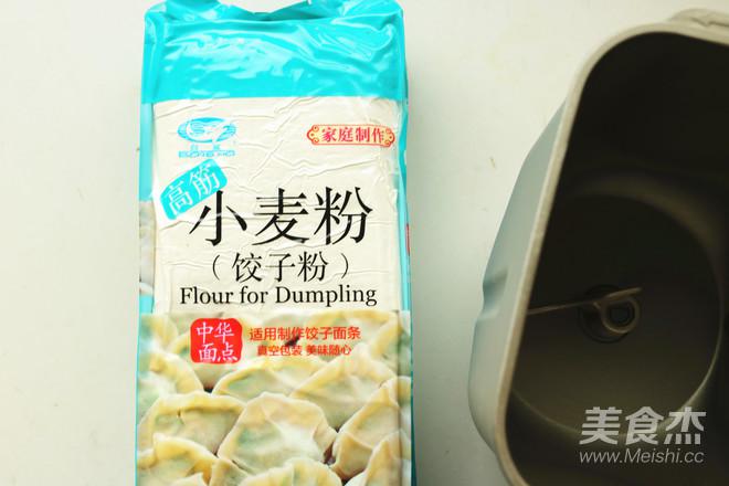 2.面粉放入面包機內筒,加入水和鹽。面包機選擇意大利面面團程序,揉面15分鐘。
