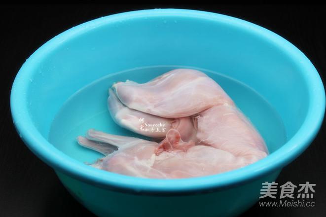 1.兔肉是冷凍的,要清水浸泡去血;
