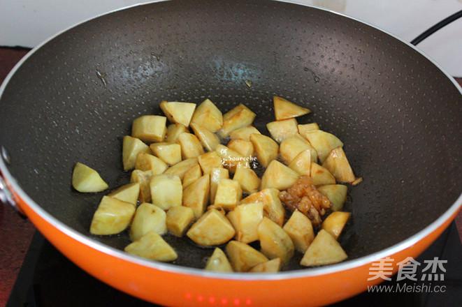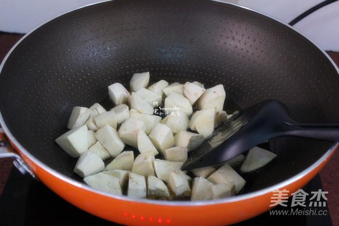 把白薯塊加入,翻炒;