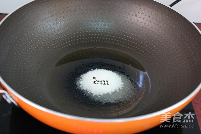 熱鍋,放油,放入白砂糖,中小火炒出糖色;