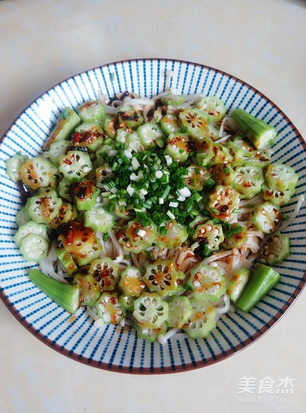 燒鍋開水,放入少許油鹽,放金針菇和秋葵下鍋煮兩分鐘,撈起