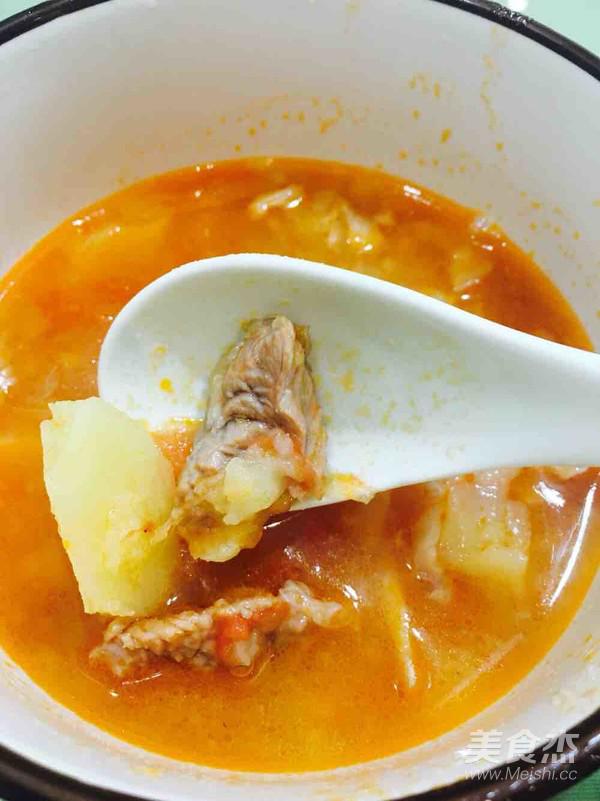 家里突然來客人了,后面沒來的及拍照,抱歉。 放入砂鍋后,大火燒開,小火慢煲1小時。 放入土豆塊(我切的土豆塊大點,耐煮),適量鹽,在小火慢煲1小時。 時間到后,如果喜歡粘稠味濃的可以開蓋、慢攪、大火、收汁,我想喝里面的湯水,所以直接就食用了。