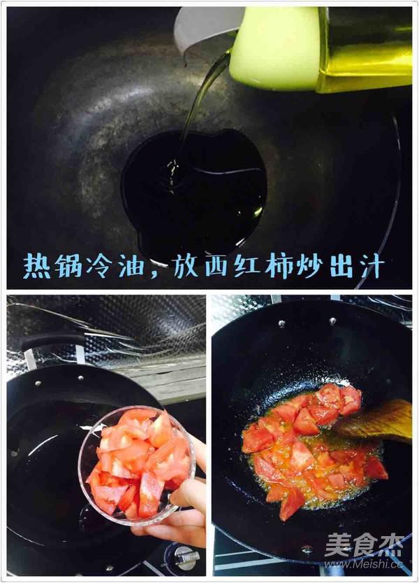 熱鍋冷油,放西紅柿炒出汁