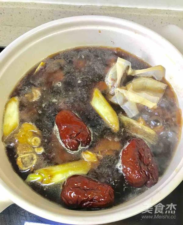 7.加入開水,紅棗和香料包,大火燒開,小火開燉