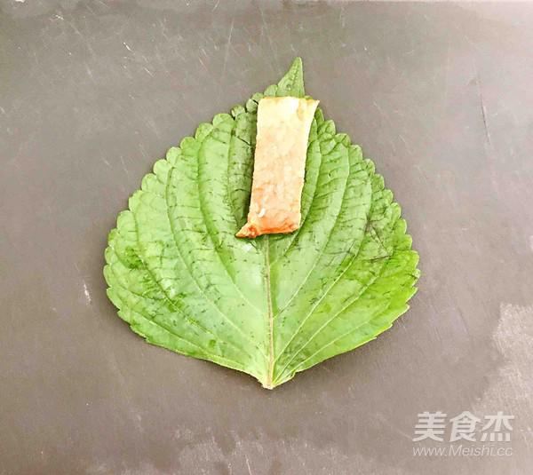 17.取一片紫蘇葉,在上面放一塊烤肉