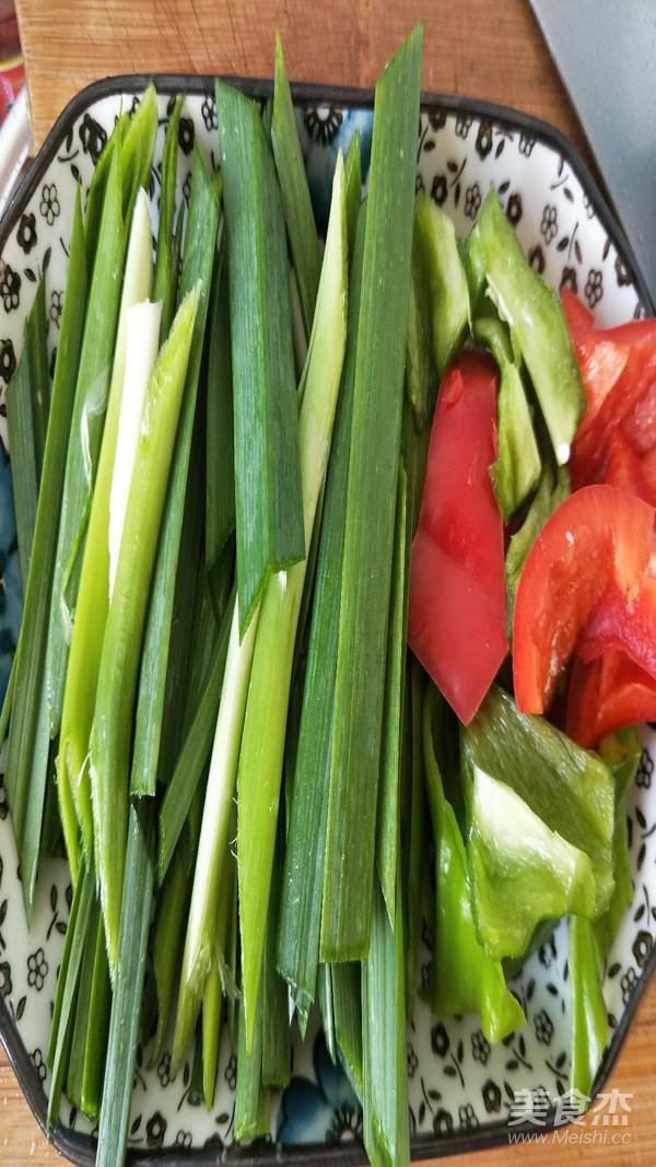 把大蒜 青紅椒洗凈切好待用