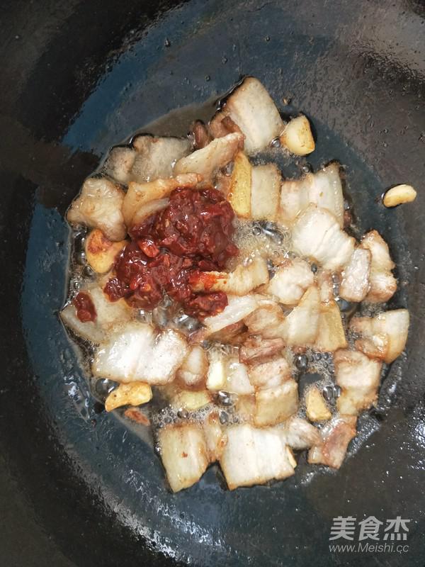 五花肉微微焦黃 放入郫縣豆瓣醬少許