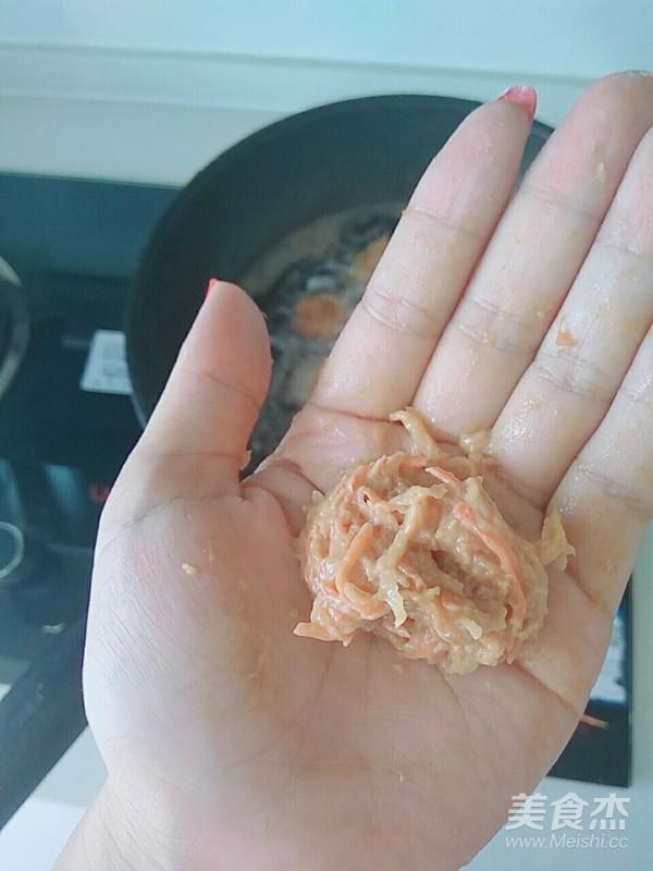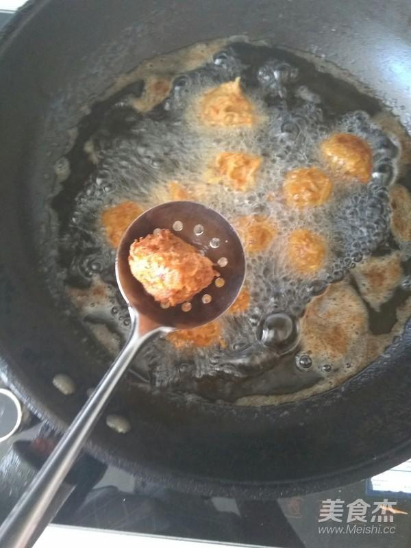 小火慢炸,上色后撈起,光顧的拍照,有兩個(gè)丸子都炸糊了