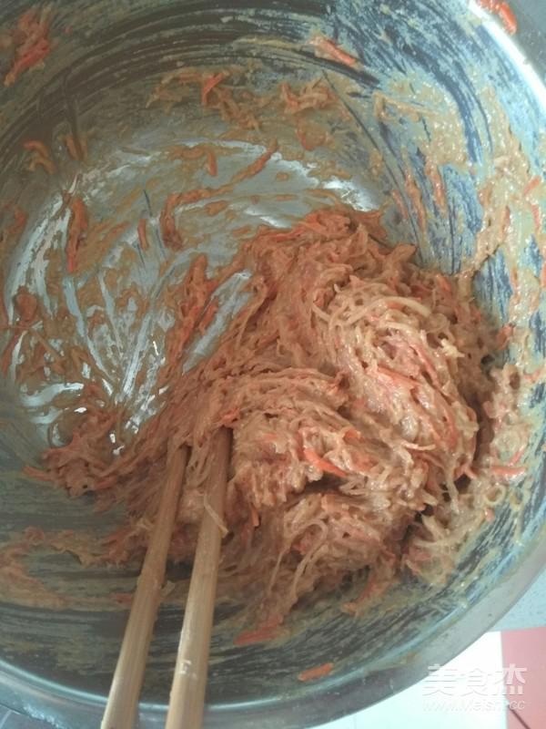 擠過水的蘿卜用刀切切(不用切的太碎)然后放入肉餡里拌勻