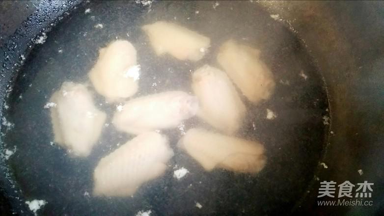 水燒開把雞翅倒入水中焯一下,去血水,去腥。