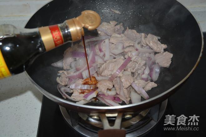 把肉片劃散到一邊,倒進洋蔥絲翻炒