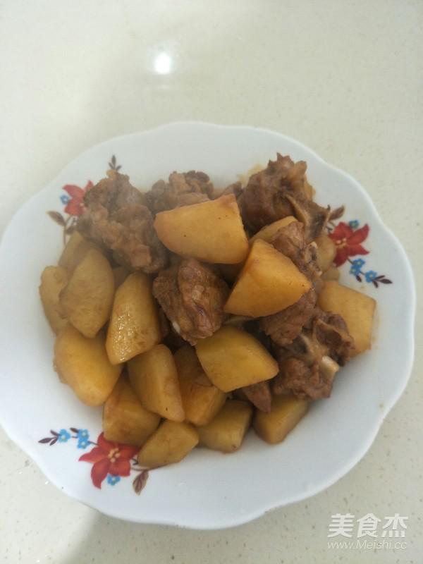 鍋燒熱加入食用油,放入姜末排骨炒香,加入生抽,醬油,清水燒十分鐘