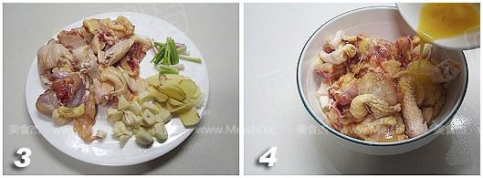 5.炒鍋燒熱了,放入少許油,涼油放入雞塊,用中火煸炒(如果有條件油炸的話,就將油燒熱,放入雞塊大火炸至金黃色撈出,再度把油燒熱, 放入雞塊復炸1分鐘,這樣效果會更好)