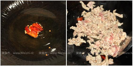 5.鍋中放油稍微多些,炒羊肉油少不好吃,放兩個將籽去掉的干辣椒,炸至棕紅