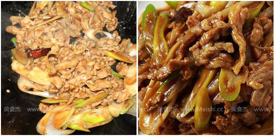 8.開大火把汁攪勻倒入鍋里,快速炒動,上勁就出鍋