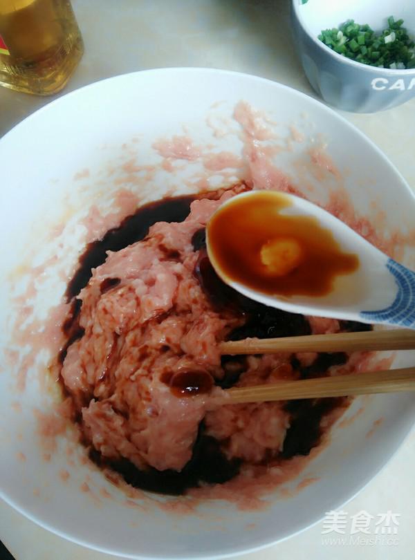9.取一張餃子皮,邊沿蘸上少許清水,放入一勺肉餡